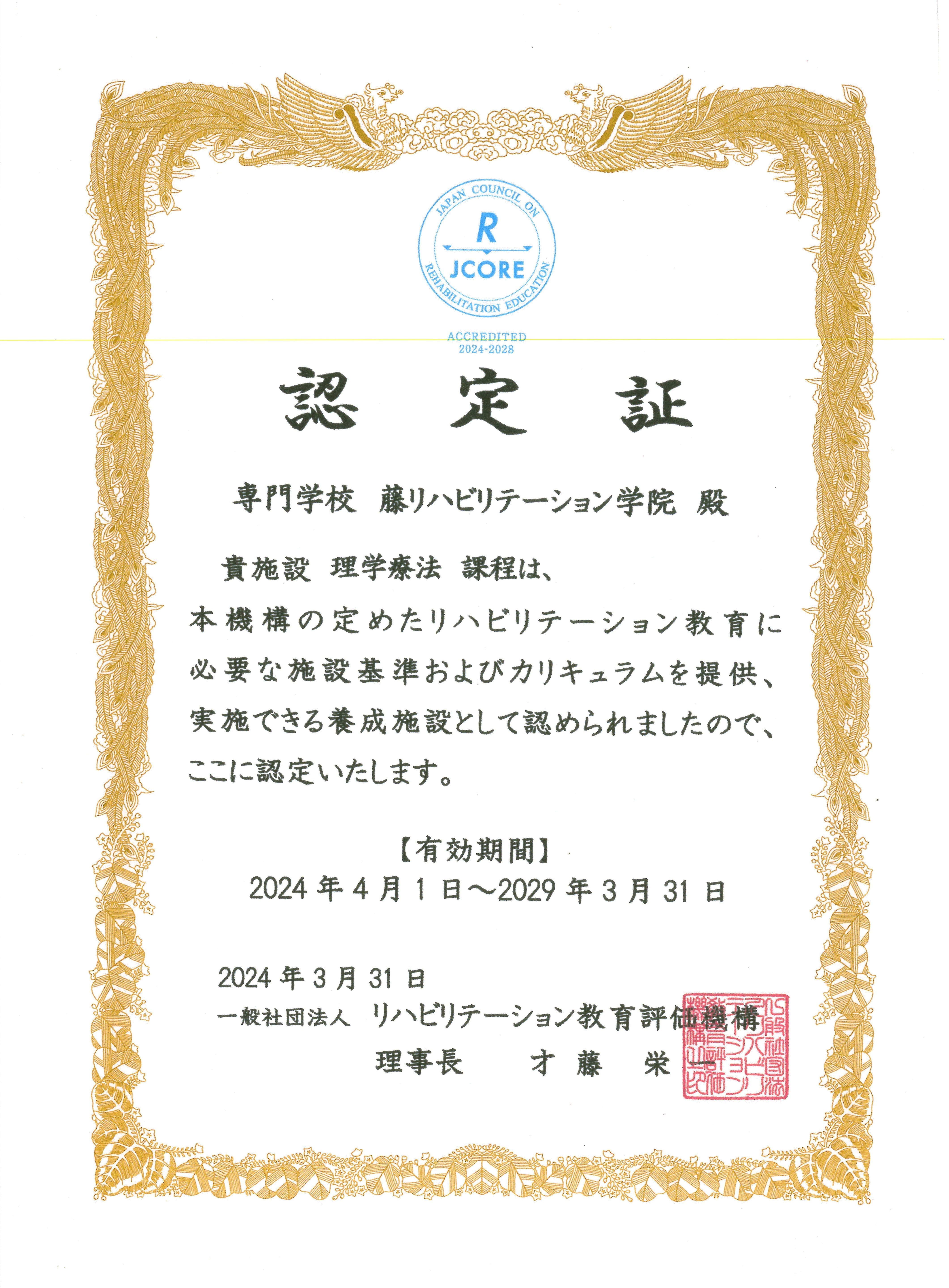 藤リハビリテーション学院は「書類審査」「実施調査」等の審査により評価基準を満たしているとされ認定を受けました。少人数教育と併設病院との協力により、学修進度・時期に合わせた教育および実習を実践できていることが大きく評価されました。